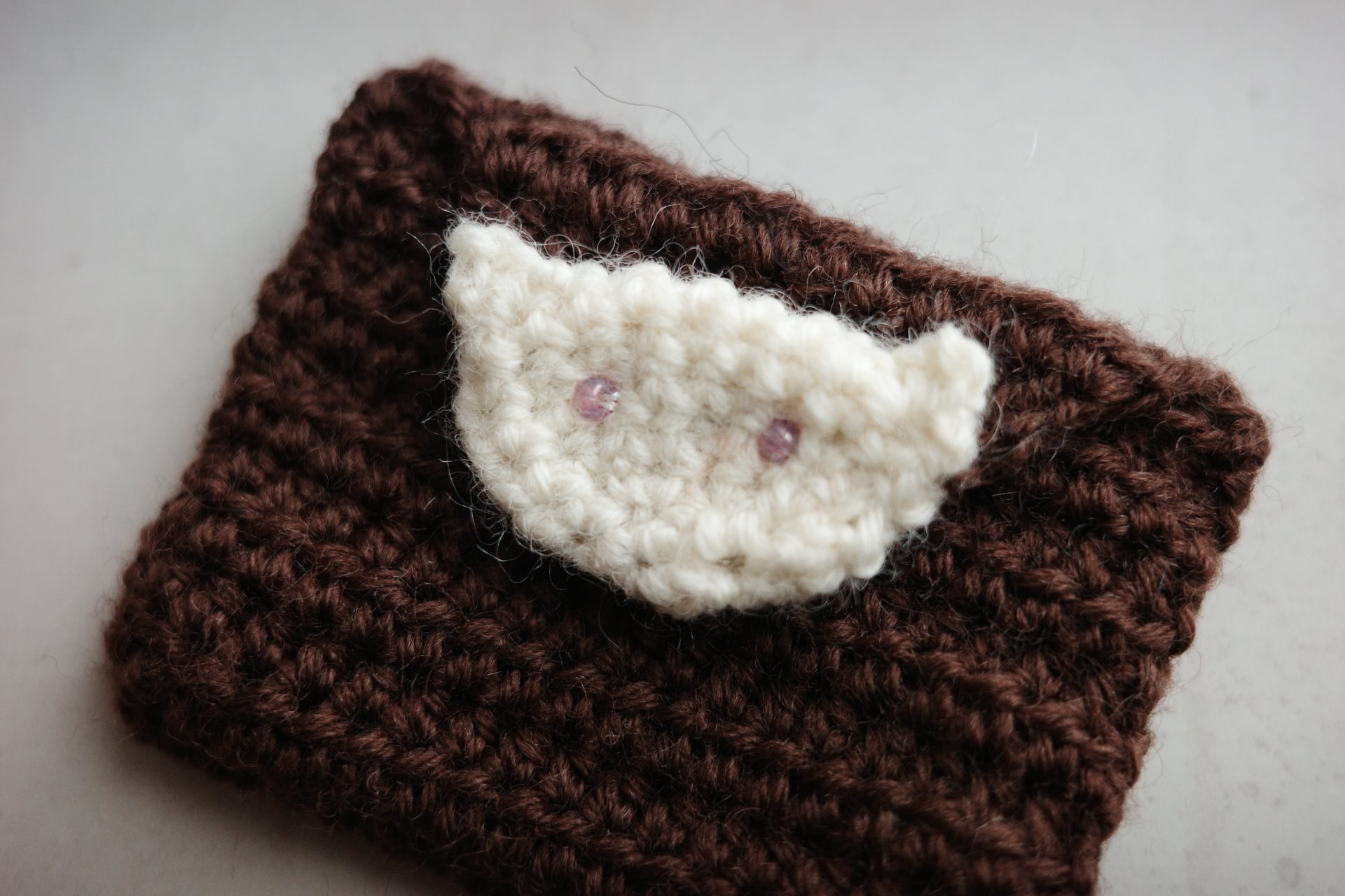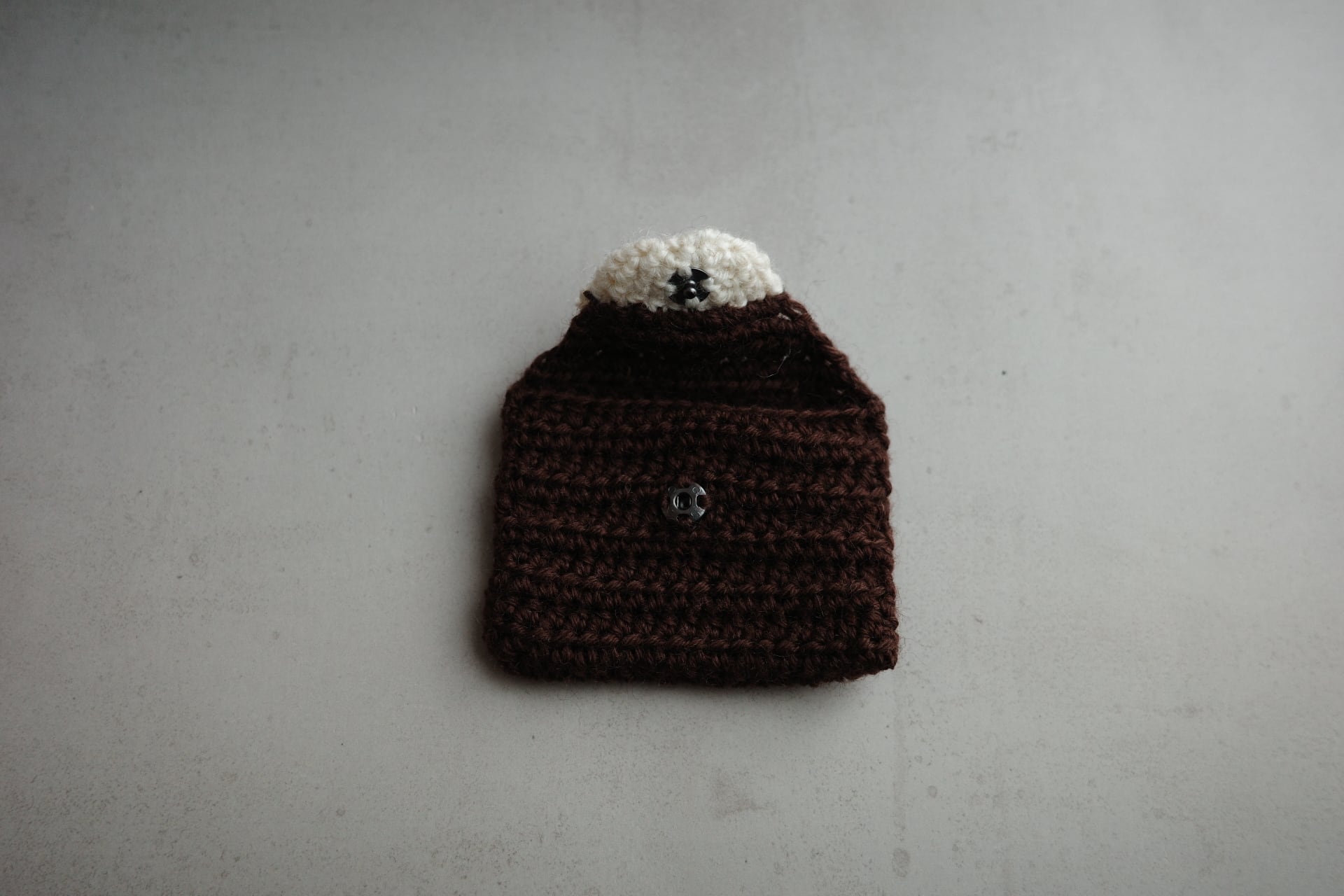 ビーズおめめの白猫のミニミニポーチ・ダークブラウン(7×5cm)