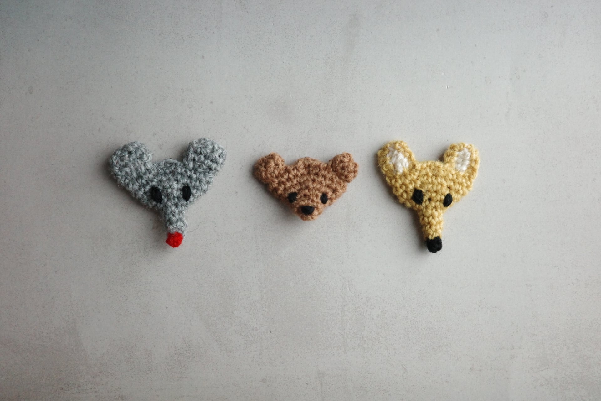 ねずみとくまときつねのチャームセット(かぎ針編み)