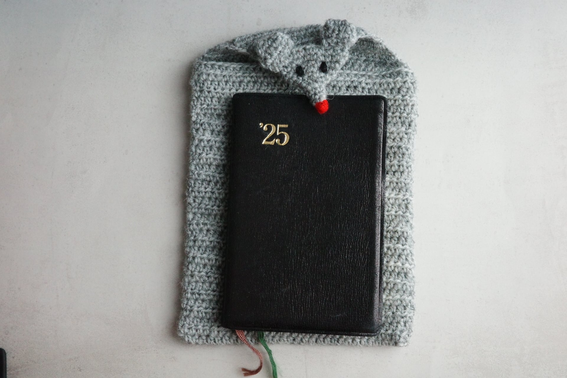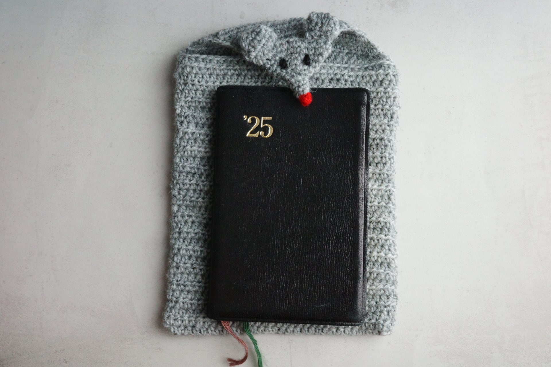 ねずみさんがついた封筒のようなデザインの文庫本サイズポーチです。