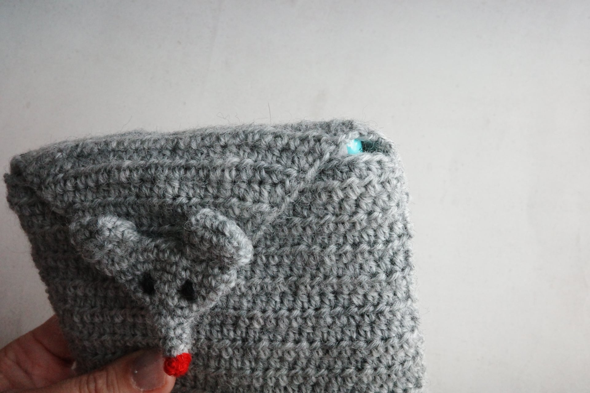 ※マグネットボタンの裏側は補強してありますが、ニットは伸びやすいのでなるべくボタンの近くに手を添えて開け閉めしてください。