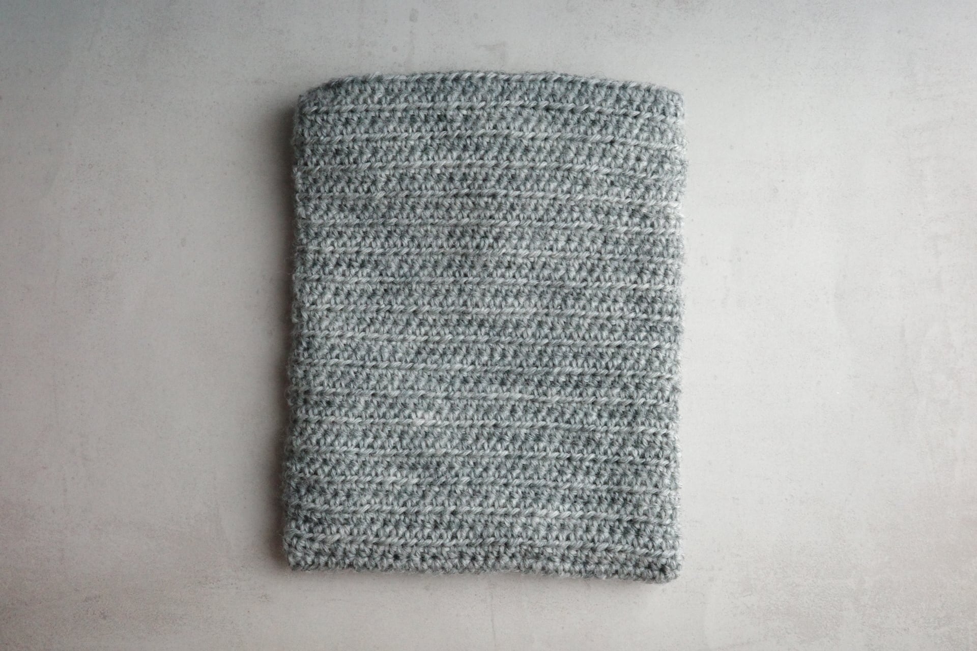 細めの糸で編んでいるので厚すぎず薄すぎず少しくたっとして手に馴染むちょうど良い質感とのご感想をいただいております。
