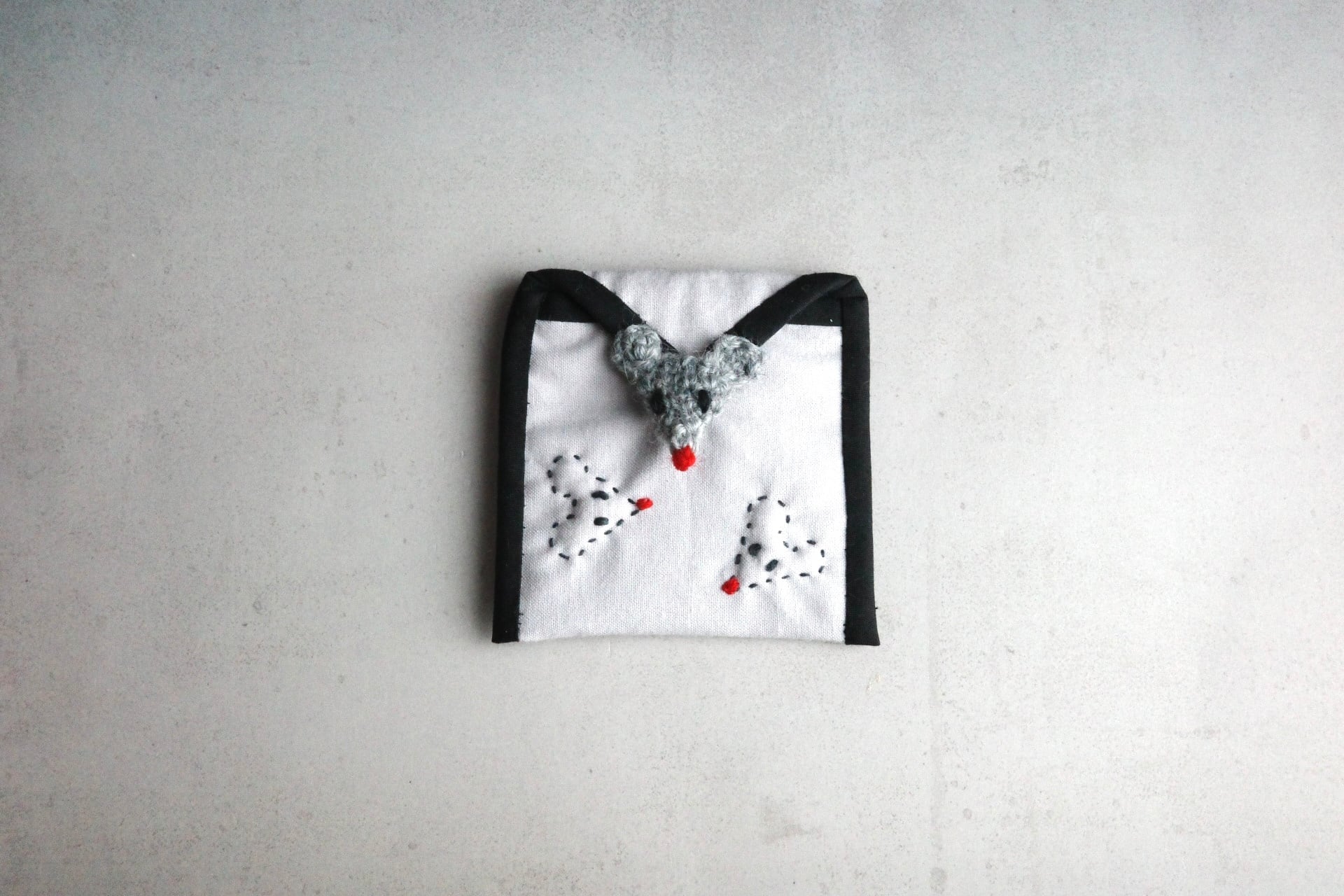 小さなねずみがちょこんとついた封筒型のポーチです。