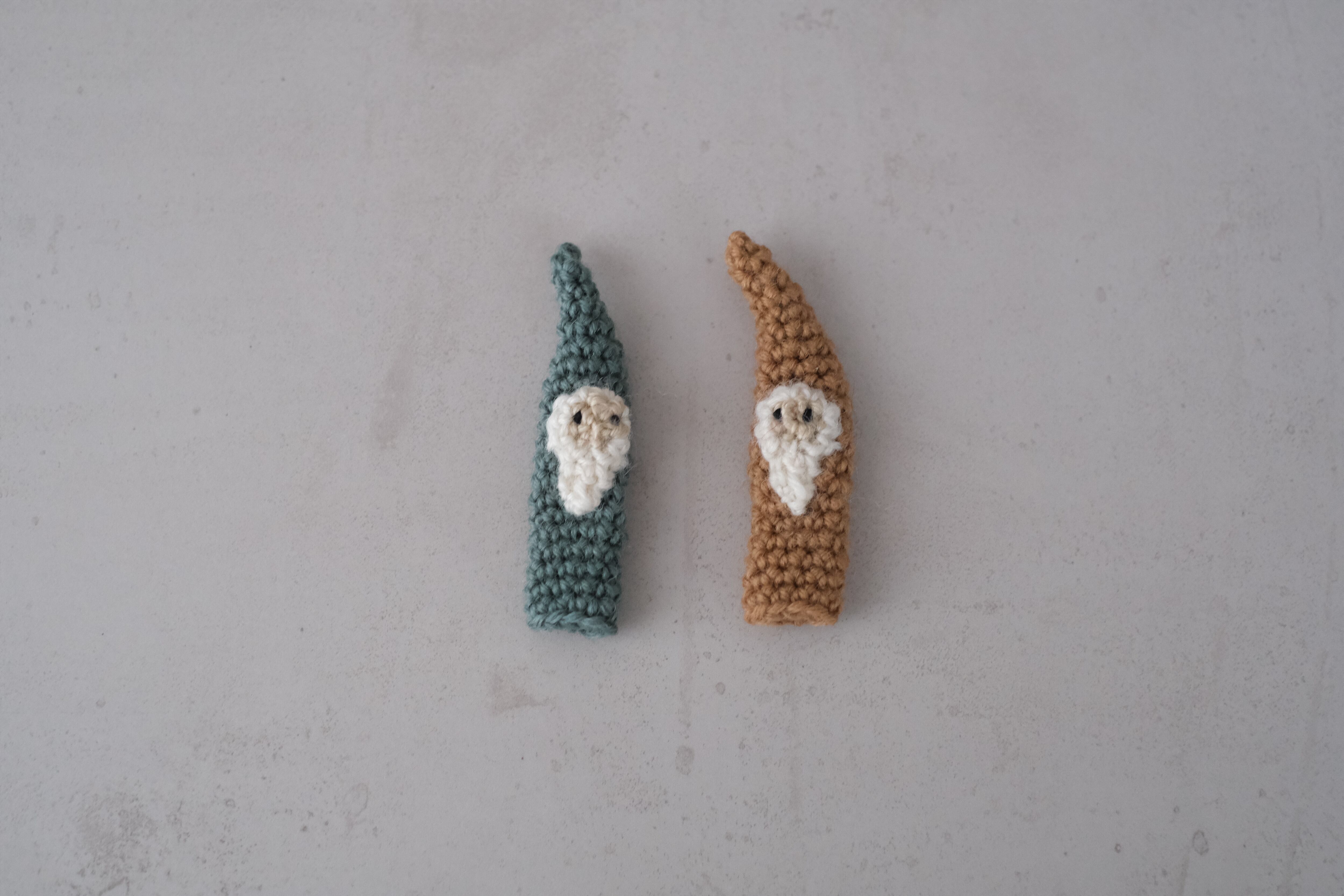 かぎ針編みでつくったこびとの鉛筆キャップです。