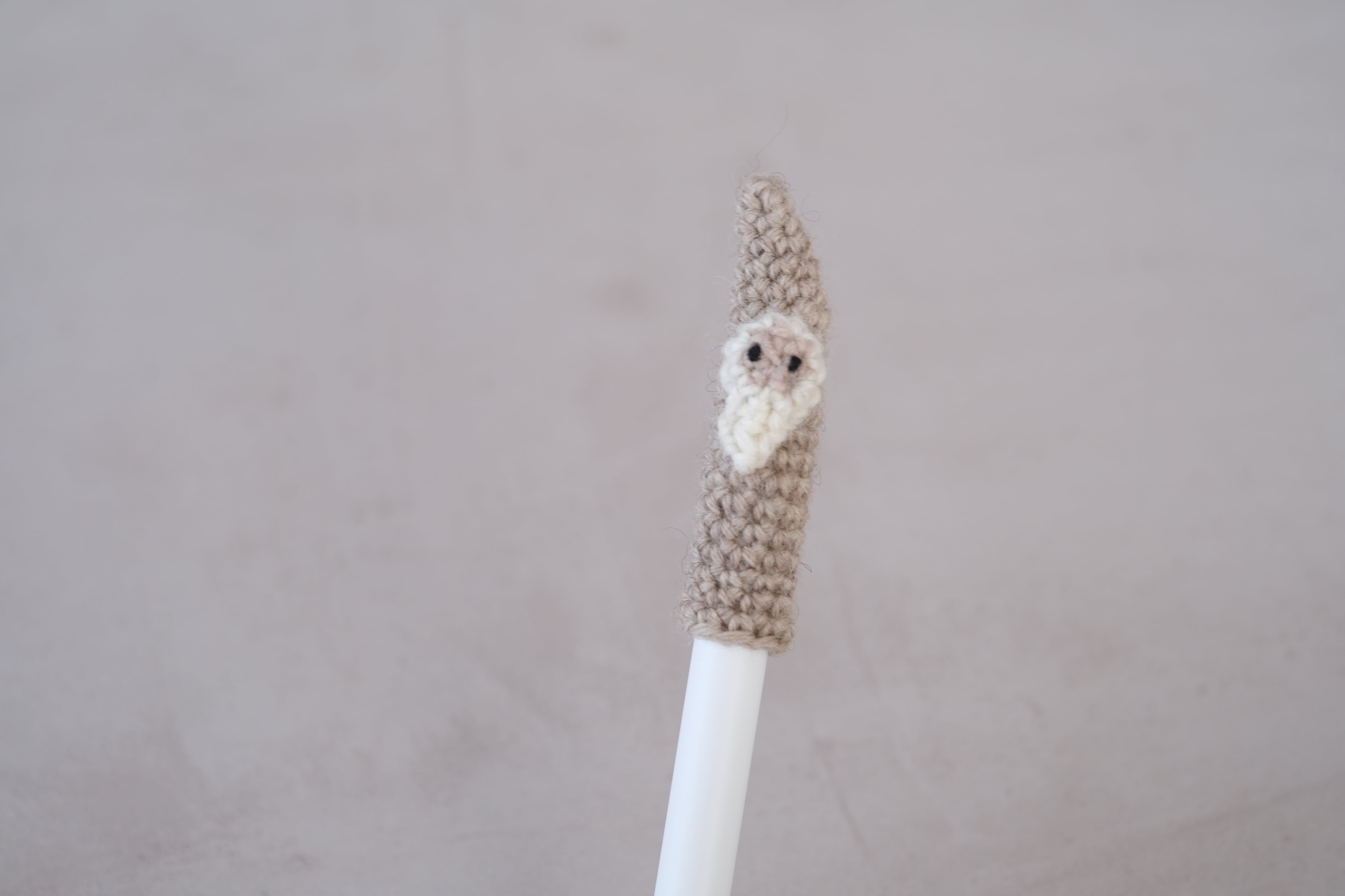 かぎ針編みで作ったこびとの鉛筆キャップです。
