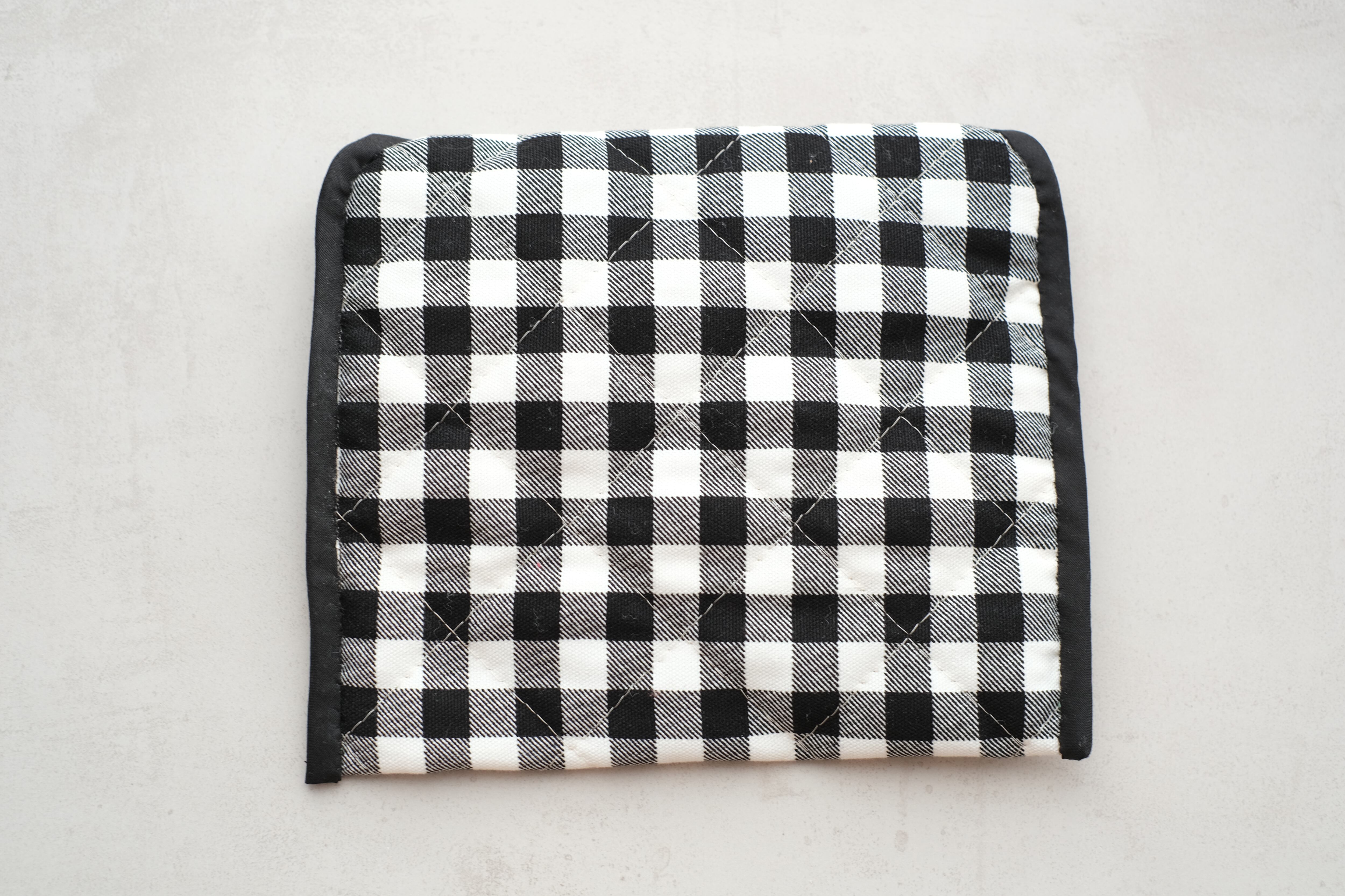 コットンのキルティングの布を手縫いでレター型ポーチに仕立てました。
